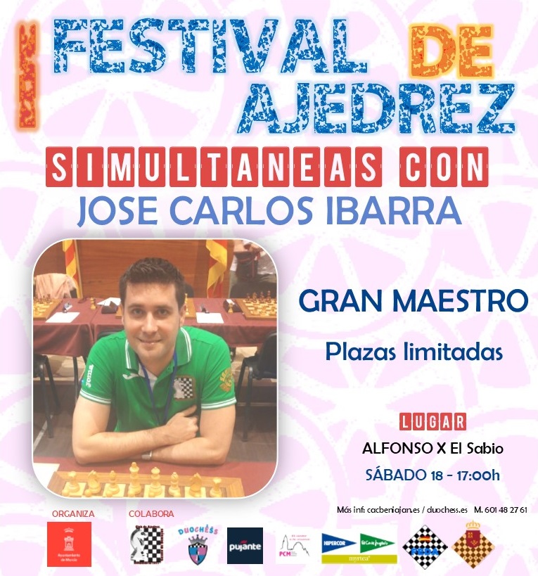 - 17:00 Simultáneas de Jose Carlos Ibarra. El gran maestro murciano también se enfrentará a 20 personas a la vez, ¿ te atreves a retarlo?