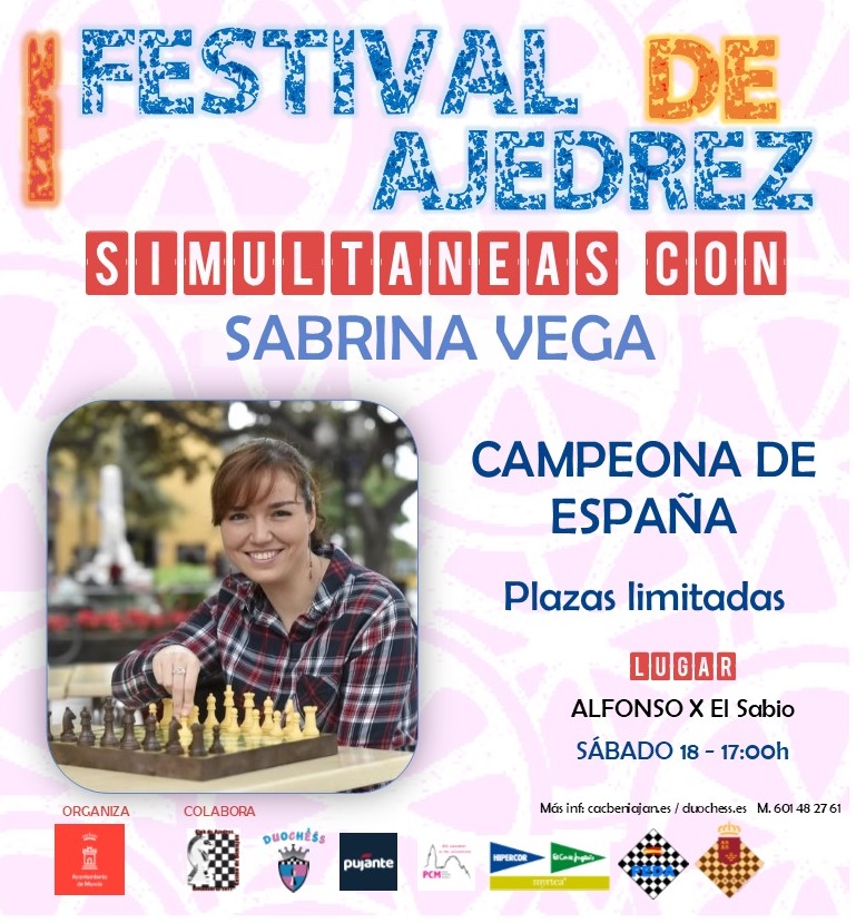 - 17:00: Simultáneas de Sabrina Vega. La gran maestra canaria jugará con 20 personas a la vez, ¿será capaz de ganarlas todas? ¿Te atreves a enfrentarte a ella?